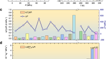 Then, we move the response to applied pressure. Under 400 MPa, the crystal structure is monitored in a similar way (Fig. 3b). The two phase transitions are suppressed, and there is a unique phase throughout all the temperature regions from room temperature to 5 K, which has been identified as the high-pressure rhombohedral phase in the previous work at room temperature11. This result points out a single high-pressure phase during a pressure-cooling process. Differing from the temperature scan under constant pressure, several pressure scans were also performed at constant temperatures. At constant temperatures of 10, 100, and 200 K, neutron powder diffraction patterns were collected under ambient pressure, 100, 400, and 700 MPa, respectively. In Fig. 4a–f, we show the patterns of 100 and 400 MPa, while the rest are given in Supplementary Fig. 4. The Rietveld refinements of the patterns at 10 and 100 K under 100 MPa indicate a single phase of the rhombohedral structure, implying a critical pressure smaller than 100 MPa. The crystallographic information of this rhombohedral phase is listed in Supplementary Table 3. Note that Bragg peaks of lead are present since it is used for calibrating the actual pressure of samples. In contrast, there is phase coexistence with a residual monoclinic phase at 200 K, suggesting that 100 MPa is insufficient for a complete transition to the rhombohedral phase. Upon applying pressure up to 400 MPa, the phase transition is completed. This difference in critical pressures reflects a positive slope of the phase boundary in the temperature-pressure phase diagram. The determined lattice dimensions are shown in Supplementary Fig. 5a. Increasing pressure from the ambient pressure to 100, 400, and 700 MPa, the unit cell volume undergoes an abrupt decrease at ~ 100 MPa, reflecting the transition from the low-pressure monoclinic I to the high-pressure rhombohedral phase.