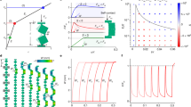 To further understand the transition between the two-lobe diamond and alternating ellipse regions, we perform a sequence of nonlinear static steps (see Supplementary Information “Finite Element Models” section for more details). By varying \(\overline{R}\) across the boundary of the modes, we separately compute the bending Ub and stretching Us energies of the top/bottom plates (\({U}_{plate}^{b}\), \({U}_{plate}^{s}\)) and the cylindrical shells (\({U}_{shell}^{b}\), \({U}_{shell}^{s}\)) to compare the contribution of each structural element to the overall deformation response.