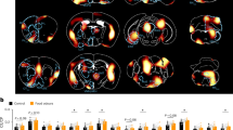 Real-time place avoidance tests were performed as previously described66. Briefly, the same mice used in the excitatory optogenetic studies were used here. All tests were performed in a dedicated soundproof behavioral facility. These mice were brought to the procedure room 1 h before the start of each test and remained in the same room throughout the test. The conditioned place preference apparatus contained two identical conditioning chambers (chambers 1 and 2) that were connected by an opening (10 cm) in the center. Each chamber was 30 × 30 × 30 cm (length × width × height) with white plexiglass walls and floor. Before testing, mice were allowed to explore the two chambers for half an hour during the light cycle. Then, blue light (473 nm, 5 ms/pulse, 20 Hz) was shed when it entered chamber labeled with light on and ceased when it entered chamber labeled with light off indicated in the figure. Time spent in each chamber was recorded and analyzed for chamber preference by experimenters who were blind to experimental information. At end of these experiments, all mice were perfused with 10% formalin. Brain sections were collected, and expression of EYFP and the track were checked. Only those with accurate targeting were included for data analyses.