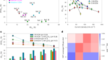 With the target of potential industrial applications, an electrolyzer stack is further assembled as shown in Fig. 4f, which consistents of four 10 × 10 cm2 modules connected in series3,50,51. The maximum production rate of C2+ products is over 770 mmol/h with an inlet of 80% CO2, corresponding to a total current of 81.7 A (Fig. 4g). With the utilization of pure CO2 inlet, the maximum total current of 95.9 A is achieved with the C2+ production rate of around 800 mmol/h. Therefore, such a dual strategy of mass transport regulations and reaction kinetics promotions is scalable for potential industrial-level applications.