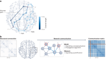 A communication model describes a strategy for guiding signal propagation along structural connectivity1,2. In this paper, we mainly focused on the transmission cost, which is defined as the mean first passage time (MFPT) on a biased random walk47. Specifically, a weighted connectome can be expressed as a matrix \(W\in {{\mathbb{R}}}^{N\times N}\), where \({W}_{{ij}}\) is the weighted streamline count. The weight-to-length transformation can be defined in various ways. Following a previous work28, we used \(D=-{\log }_{10}\left(W/\left(\max \left(W\right)+\min \left({W}_{ > 0}\right)\right)\right)\) to attenuate extreme weights70. The transmission cost was implemented based on the following dynamics of the system: