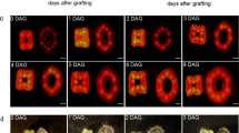 The roots of grafted cucumber/pumpkin and cucumber/cucumber seedlings were pretreated with 50 μM FITC-Isoleucine, or leucine solution for 12 h. The distilled water was used as the negative control54. Then, grafted seedlings were transferred to a climate chamber at low (4/4 °C) and normal (28/18 °C) temperature with a 14 h/10 h light/dark photoperiod and PPFD of 300 μmol m−2 s−1. After 6 h of low temperature treatment, the distribution of FITC-Isoleucine and FITC-leucine in roots, stems, petioles and leaves of grafted seedlings was examined by confocal laser scanning microscope (TCSSP8, Lecia). FITC fluorescence signal was quantified by ImageJ software.