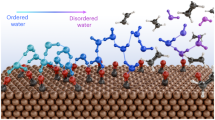 Most notably, the relative intensity of the IW peak in solid water strengthens with increasing voltage. Figure 5d shows that the IW:FW ratios of peak height and peak area both increase for solid water, while no clear trend can be observed for liquid water. The increase in IW relative intensity can also be clearly seen in Fig. 5c. As the IW peak corresponds to weakly bound water molecules, an increasing proportion of IW would enable molecules to detach and escape more easily from the evaporation surface. This indicates decreasing \({H}_{{{{\rm{vap}}}}}\) with rising voltage in the case of solid water, a finding which is in line with the enthalpy trend in Fig. 5a.