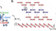 where the first term \(\left\langle {L}_{{\rm{z}}}\right\rangle -\left\langle {L}_{{\rm{x}}}\right\rangle\) and the second term \(-\left\langle {Q}_{{\rm{zz}}}{S}_{{\rm{z}}}\right\rangle\) represent the expected values of orbital moment anisotropy and spin quadrupole moment, respectively. \({\xi }_{I}\) and \({\Delta }_{{\rm{ex}}}^{I}\) are the spin-orbit coupling constant and exchange splitting of each atomic site, respectively37. Note that the plus (\(+\)) and minus (\(-\)) signs depend on positive and negative values of the spin moment\(\,\left\langle {S}_{{\rm{z}}}\right\rangle\), since the direction of the spin quantum axis at each atomic site depends on the direction of the local spin moment. Figures 4a, b illustrate the Ru and O sites in the units of RuO2 used in this calculations with the quadrupole and spin moments. The contribution to the MAE of the first term (spin-conserving) and the second term (spin-flipping) within the Ru sites are shown in Fig. 4c. The positive and negative values indicate the [001] and [100] easy axes of the magnetization, respectively. It is found that the Ru atoms mainly contribute to the MAE along the [001] direction, while the contribution of oxygen to the MAE is negligible. In particular, the spin-flip term contributes more than twice as much to the MAE as the spin-conserving term. This suggests that the spin quadrupole of the Ru sites has a cigar-type distribution along the [001] direction, as shown in Fig. 4a, which mainly contributes to the MAE of RuO2. Note that the spin-conserving term is also positive. The fact that both spin-flip and spin-conserving terms contribute to the MAE is unique and identical for altermagnetism-based antiferromagnets. Figure 4d shows the orbital moment anisotropy (difference between the [001] and [100] directions) and the spin quadrupole moment (\(-\left\langle {Q}_{{\rm{zz}}}{S}_{{\rm{z}}}\right\rangle\)) for the Ru atom. It is clear that the quadrupole term is larger than the orbital moment anisotropy, which is consistent with the dominant contribution of the spin-flip term in Fig. 4c. The band dispersions and MAE contributions along the high symmetric lines of rutile-type RuO2 (P42/mnm) are shown in Fig. 4e, f. Looking at the spin quadrupole moments from the z-axis ([001] direction), one would expect anisotropy in the [110] and [\(\bar{1}10\)] directions due to the anisotropic oxygen bonding in the rutile structure. However, the in-plane anisotropies are counteracted by the antiferromagnetic magnetic structure of the Ru1 and Ru2 sites. Thus, there remain the cigar-type spin quadrupole moments in the z-axis caused by the distorted tetragonal structure of RuO2. This cigar-type spin quadrupole moment of Ru has been observed experimentally and is considered to be the origin of the strong magneto-crystalline anisotropy along the [001] direction. The spin-dependent band dispersions of RuO2, especially along the Γ-M line around the Fermi level, which is a distinctive feature of altermagnetism and is consistent with the previous report6. Non-zero MAE contributions of the spin-conserving and spin-flip terms are also found along the Γ-M line, as shown in Fig. 4f, which indicates that the MAE contribution will be enhanced in the Brillouin zone with the spin-polarized band dispersion. Therefore, the DFT calculations of single-variant RuO2 indicate that the large MAE with antiferromagnetic order originates from the stability by forming spin quadrupole states along the Néel vector direction.