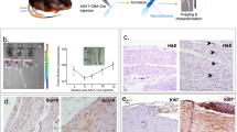For IHC staining, tumors were preserved in 10% formalin and paraffin sections were obtained. Paraffin sections of tumors were deparaffinized, rehydrated, quenching in 1.875% H2O2 in methanol and antigen-retrieved using the Citra buffer (Biogenex) as described50. Briefly, following antigen-retrieval, the sections were blocked by 10% goat serum (Sigma, G9023) for 30 min at room temperature (RT), and incubated with the rabbit anti-GFP antibody (Cell Signaling, #2555) at 1:200 dilution in 10% goat serum solution in PBS with 0.2% Brij 35 overnight. Following the wash, the sections were incubated for 25 min with biotin-conjugated goat F(ab’)2 anti-rabbit IgG (JacksonImmunoResearch, 111-066-144) at 1:500 in 10% goat serum solution. After wash, the sections were incubated with streptavidin peroxidase (Biogenex, HK330-9KT) for 15 min. The staining was visualized with 3, 3’-diaminobenzidine (DAB, BioGenex) and counterstained with hematoxylin.