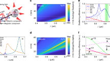 Using the single-branched paraboloidal spectral surface as a building block, we construct complex surface geometries by modifying the space-time coupling function Ω(kr). We consider two such spectral structures: an open-surface double-branched paraboloid \(\Omega ({k}_{r})\,=\,\pm (a{k}_{r}^{2}+b)\), (Fig. 1c), and a closed-surface spinning-top \(\Omega ({k}_{r})\,=\,\pm (\frac{a}{{k}_{r}}+b)\) (Fig. 1d); where a and b are positive real constants. The meron texture here is the same on both branches of these surfaces in momentum-energy space (Fig. 1c, d, panel (i)). In principle, however, independent spin profiles could be prescribed on the two branches to explore other skyrmionic structures. The structure of the ST merons in physical space E(x, y, z; τ) is calculated via a 3D Fourier transform (at z = 0). First, the 3D structure of the unit vector n(x, y, z; τ) for both ST merons reveals non-trivial Stokes vector distributions localized in the 3D space-time volume of the wave packet; see Fig. 1c, d, panel (ii). This is in striking contrast with the spectral distributions in momentum-energy space, where the Stokes vector is distributed over only the surface \({{{\mathcal{S}}}}({k}_{x},{k}_{y},\omega )\). The 3D plots of the intensity isosurface I = 0.1 (after normalizing the intensity to unity) in panel (iii), reveal that the ST meron corresponding to the closed spectral surface is more localized (Fig. 1d), whereas the open-surface ST meron shows the characteristic X-shaped structure of free-space STWPs (Fig. 1c)30,47. To clearly visualize the spatiotemporal structure of the polarization texture in physical space, we plot the Stokes vector n(x, y = 0, z = 0; τ) in panel (iv), and the projections nx, ny, and nz in panels (v–vii) in the 2D space-time plane (x, τ). These plots reveal a swerve of the Stokes vector in the ST meron on a spatial scale smaller than the beam size, and on a shorter temporal scale than the pulse width, corresponding to the sub-wavelength spatial features of 2D skyrmions in evanescent fields22.