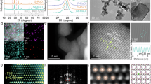 The scanning electron microscope (SEM) images were recorded on a GeminiSEM 360. The high-resolution TEM and HAADF-STEM and EELS mapping images were recorded on a JEOL-2100Plus high-resolution transmission electron microscope working at 200 kV and a ThermoFisher Themis Z with a spherical aberration corrector worked at 300 kV. Powder X-ray diffraction (XRD) measurements were recorded on a Rigaku Miniflex-600 operated at 40 kV voltage and 15 mA current using a Cu Kα radiation (λ = 0.15406 nm) at a step width of 8° min−1. The ICP measurement was performed on Optima 7300 DV inductively coupled plasma atomic emission spectrometer. X-ray photoelectron spectroscopy (XPS) was recorded on ESCALAB 250Xi. Raman scattering spectra were recorded with a Renishaw System 2000 spectrometer using the 514.5 nm line of Ar+ for excitation.