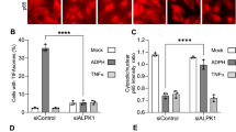 ADP-heptose (showing D-isomer in Fig. 2a) is well-established as a canonical PAMP that triggers ALPK1 activation4,5,6, serving as an essential mediator for the upregulation of inflammatory cytokines and chemokines including TNF-α and CXCL8 (also known as IL-8) in response to bacterial infection11. We previously developed the ADP-heptose derivative DF-006 (Fig. 2a) as a serum-stable small molecule ALPK1 agonist that triggers TIFA phosphorylation and the upregulation of Tnf and other proinflammatory genes12. Once phosphorylated, TIFA dimers engage in intermolecular interactions and trigger the assembly of large TIFAsomes9. DF-003 potently suppressed DF-006-induced TIFAsome formation (Fig. 2b, c), suggesting its intracellular inhibition of ALPK1. We also tested the ability of DF-003 to suppress the induction of inflammatory cytokine and chemokine gene expression in THP-1 macrophages triggered by DF-006. DF-003 exhibited IC50 values of 8 nM and 6.5 nM for the inhibition of DF-006-induced TNF and CXCL8 upregulation, respectively (Fig. 2d, e). These data demonstrate that DF-003 disrupts inflammatory signaling downstream of ligand-mediated ALPK1 activation in immune cells.