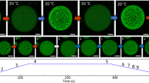 An example of raw RICS data and autocorrelation curve fitting is shown in Supplementary Figs. 20 and 21. The apparent viscosity (η) of the condensates was calculated using the Stokes–Einstein relation, based on the measured diffusion coefficient (D) of A488 and its hydrodynamic radius (R). The equation used is: \(\eta={k}_{{\rm{B}}}T/6\pi {DR}\), where kB is the Boltzmann constant, T is the temperature, D is the diffusion coefficient, and R is the hydrodynamic radius of A488, taken to be 1.4 nm.