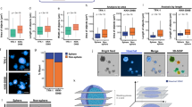 Next, we selected a spherical and an irregular spheroid from co-cultures as representative cases (Fig. 2j and Fig. 7a). The spherical sample revealed that MRC-5 cells were grouped in the middle of the spheroid and surrounded by the HeLa Kyoto cells (Fig. 8a–c). This structure, a fibroblast core covered by the tumour cells, was more common and spheroids with a more spherical shape showed similar distributions. Meanwhile, the structure of the irregular spheroid had multiple MRC-5 cores and HeLa Kyoto cells were more evenly distributed. The position of the cells within a spheroid proved to be a good indication of the structure, however, since the point of intersection is a characteristic feature due to size and the total number of cells.