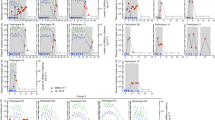 The minimal therapeutic range of rapamycin is considered to be trough levels of 5–15 ng/ml in whole blood31,32,33,34. Our initial dosage regimen resulted in rapamycin levels of up to 60 ng/ml at week 0 (Fig. 2d). To reduce or avoid potential adverse events while maintaining a therapeutic range, we adjusted the dosage in individual monkeys and performed rapamycin injections three times a week beyond week 0. Most animals maintained therapeutic rapamycin levels around 15 ng/ml of whole blood between weeks 5 and 12. Nonetheless, early adjustments to the drug regimen resulted into unfavorable rapamycin fluctuations leading to subtherapeutic drug levels at week 2 post AAV in at least two of the monkeys. The monkeys that were mostly affected by the drop of rapamycin levels at that time were r20073 (4 ng/ml) and r21082 (3 ng/ml) (Fig. 2d).
