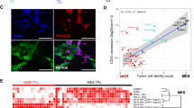Additionally, we noticed that the relapsed/resistant tumor cells acquired a high “neural crest stem cells” gene signature (Fig. 1c,i), suggesting that these therapy-resistant cancer cells underwent de-differentiation. We then examined the ADRN and MES signatures46 and found that the relapsed/resistant cells exhibited a significant shift to the MES state (Fig. 1j). Particularly, we also found that the relapsed/resistant tumor cells expressed a signature of “Schwann cell precursors (SCP)”51,52, characterized by high expression of S100b, Sox10, Plp1 and other genes (Fig. 1k). Then we colored the UMAP projection by the expression of Sox10, the SCP transcription factor, into the single cell analysis of human adrenal medulla, which demonstrated high levels of SOX10 expression in SCPs but not in chromaffin and neuroblast cells (Fig.1l), the downstream progenies of SCP and origin of neuroblastoma. We further examined the SCP signature, which was highly expressed in the resistant/relapsed Th-MYCN/ALKF1178L tumors, in two human neuroblastoma cohorts (Target NBL21 and St Jude PCGP59). The SCP markers such as TLX3, SOX10, S100b, and FOXD3 appeared to be enriched in non-MYCN amplified tumors (Supplementary Fig. 1a, b), suggesting that the resistant/relapsed MYCN-driven tumors acquired gene features similar to the non-MYCN amplified tumors. Taken together, these data indicate that the resistant/relapsed neuroblastomas acquired new cell state properties of neural crest progenies.