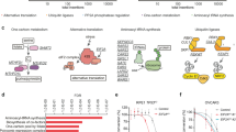 RNA was extracted from snap-frozen cell pellets using the RNeasy mini kit (Qiagen) or Maxwell RSC simplyRNA Cells Kit (Promega). RNA extraction was as per manufacturer’s instructions. During the extraction protocol, RNase-free plastic ware and solutions were used. After RNA extraction, isolated RNA was quantified using a Nanodrop spectrograph, and stored at −80 °C. cDNA was reverse transcribed from 1 μg of RNA using SuperScript IV VILO Master Mix (Invitrogen, 11756050), according to the manufacturer’s instructions. cDNA was stored at −20 °C. qPCR was performed using 1 μL of cDNA,10 μL of 2× Fast SYBR Green Master mix (Thermo Fisher Scientific, 4385612) and 500 nM forward and reverse primers, in a final volume of 20 μL. Primers were designed and ordered to span an exon-exon junction of the target genes (Sigma-Aldrich), and sequences are detailed in Supplementary Table 2. qPCR analysis was performed on a QuantStudio 5 Real-Time PCR System (Thermo Fisher Scientific), in technical triplicate. Gene expression changes were calculated using the 2–ΔΔCt method62. RT qPCR results can be found in Supplementary Fig. 9b, c.