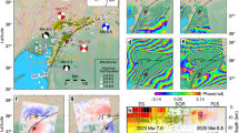 Some events within the swarm sequences exhibit long duration, low-frequency energy (<5 Hz), referred to as low-frequency earthquake swarms, which are believed to result from fluid movement through the damage zone55,56,57. During the active swarm sequences in mid-2021, a significant number of low frequency earthquake swarms were identified58, suggesting the presence of a fluid-rich body at depths of less than 11 km beneath the Longitudinal Valley. This interpretation is supported by observations of high Vp/Vs, low Vp and Vs, low resistivity59,60, and low Qp and low Qs61. The presence of fluid around the shallow CRF coincides with the location of swarm events in the study area and may be linked to the accreted forearc materials of the PSP and/or the fractured sediments along the LV suture62. Given that the high Vp/Vs body is adjacent to the exhumed Yuli Belt (i.e., high-pressure metamorphic rocks), these fluids may have also been released during the exhumation, leading to a dynamic, tectonic-hydrothermal fluid system located at shallow depths that could facilitate aseismic slip63,64,65,66,67,68,69,70,71. In addition to fluid-induced aseismic slip episodes, it is also possible that deeper aseismic slip pulses modify pore fluid pressure, thereby promoting fluid movement.