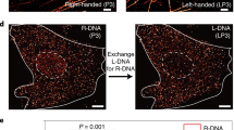 Next, to evaluate the binding kinetics of the extended speed-optimized L-DNA sequences compared to their right-handed counterparts, we analyzed DNA origami in vitro and nuclear pore complexes (NPCs) in situ. The respective “bright” and “dark” times were extracted and plotted in a violin plot (see Fig. 1d, e). Left-handed and right-handed sequences show speed-optimized kinetics comparable to previously reported values9 (Supplementary Figs. 2, 3 and Supplementary Tables 4 and 5).