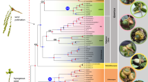 We used two previously defined parameters93 to increase the stringency and significance of BLAST sequence alignment by either parsing BLAST results and rebuilding HSPs or using pairwise sequence alignments to identify accurate paralogous relationships within oak (25,808 gene models; Supplementary Data Set 1). Orthologous relationships between oak and grape (26,346 genes on 19 chromosomes15), peach (28,086 genes on 8 chromosomes16) and cocoa (23,529 genes on 10 chromosomes17) were also determined. We estimated the sequence divergence of paralogues and orthologues from the Ks calculated with the PAML 4 package94 for oak–peach, grape–grape, peach–peach, cocoa–cocoa and oak–oak gene pairs. Dot plot representations of synteny and paralogy were obtained with the R package ggplot2 (http://ggplot2.org/; Supplementary Fig. 16).