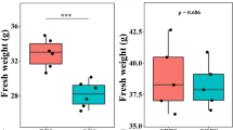 To examine the effect of microbial richness on plant growth, we performed a short-term pot experiment in which four individual fungi (Aspergillus sp. t35, Trichoderma sp. t102, Penicillium sp. 45, and Fusarium sp. 53) were set up four richness levels (1, 2, 3, and 4-strain communities altogether 15 different combinations, Supplementary Table 2). Cabbage seedlings were transferred to 150-ml pots filled with sterilized substrate pre-inoculated with these four fungi and their combinations, with a final inoculation density of 1 × 104 spores g−1 substrate. A control treated with sterilized water was also established. Pots (six replicates) were watered with sterilized water and transferred to the growth chamber with an average temperature of 25 °C, 80% relative humidity, and 16 h light/8 h dark. The plant fresh weight was determined after planting for 15 days. The procedure for producing fungal spores and cultivating cabbage seedlings were identical to those used in the greenhouse experiment 1.