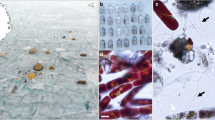 DNA was extracted and analyzed following the same method outlined in Peter et al.19. DNA was amplified with prokaryotic primers for the 16S rRNA gene Bakt_341F (5′-CCTAYGGGRBGCASCAG-3′) and Bakt_805R (5’-GGACTACNNGGGTATCTAAT-3’), and with the eukaryotic primers for the 18S rRNA gene using 528F (5′- GCGGTAATTCCAGCTCCAA-3′) and 706R (5′-AATCCRAGAATTTCACCTCT-3′). The targeted marker genes’ raw sequencing data were pre-processed using the DADA2 (vers 1.16) R (4.2.2) package77 for the removal of primers, non-target length, and chimera sequences, and for merging the reads. Sequences tables were merged, and taxonomy was assigned for 16S and 18S rRNA gene sequences using the SILVA v138 database78. Taxa which were not assigned at the genus level were assigned to the upper taxonomic rank to be considered using the function tax_fix() from the package microViz79 (0.10.8). Certain taxa not assigned to any genus with this method were subjected to a manual BLAST. Data was assembled and processed in the form of a Phyloseq80 (vers. 1.42.0) object. Only one replicate of red snow was sequenced, while the ice samples were sequenced in triplicates, and the data were averaged across replicates for plotting. Full sequencing data is shown in Supplementary Fig. 2a, d.