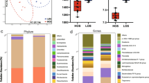 To further explore the potential functional capacities of the intestinal microbiome, we calculated the feature abundance of GO terms and KEGG Orthology (KO) by mapping the microbial gene catalog onto relevant databases. A total of 20 GO terms displayed significant differences between the LBF and HBF groups (Supplementary Fig. 4F). The results revealed that the glutamine metabolic process and arginine biosynthetic process were activated in the LBF group. The remaining 11 GO terms enriched in HBF individuals were mainly involved in carbohydrate utilization, glucose metabolism, and GMP biosynthesis. As for KOs (Supplementary Fig. 4G), arginine metabolism-related KOs, including glutamate dehydrogenase (gudB) and spermidine synthase (speE), were activated in the LBF group, while KOs such as lactose/raffinose/galactose permease and the phosphotransferase (PTS) system (2/7) showed greater abundance in the HBF group. These arginine-associated GO terms and KOs showed positive correlations with the bacterial species enriched in the LBF group, particularly P. succinatutens (Fig. 3D, E).