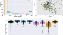 Upon assigning both protein sources and taxonomic sources to the peptides, we observed that peptides from the same protein and peptides from the same taxon exhibited higher abundance correlation. First, peptide pairs derived from the same protein (7407 pairs) exhibited higher SCCs (0.63 ± 0.22) compared to peptide pairs from different proteins (8,781,121 pairs; SCC = 0.18 ± 0.32, with p \(\le\) 0.0001 by Mann–Whitney U-test and a large effect size with Vargha and Delaney’s A of 0.88, Fig. 3B). To be more intuitive, we selected peptides from the three proteins with the highest total peptide abundances to visualize peptide abundance profiles across samples (Supplementary Fig. 3). Principal coordinates analysis (PCoA) revealed that peptides derived from the same protein tend to cluster together based on their abundance profiles across samples (Supplementary Fig. 3). Consistent with this observation, PERMANOVA analysis based on Euclidean distances showed that peptide abundance profiles for these three proteins were significantly associated with their protein source (R2 = 0.240, F = 10.76, p = 0.001), indicating that peptides derived from the same protein tend to show more similar abundance changes across samples. In addition, peptide pairs derived from the same genome (457,957) had an average SCC of 0.60 ± 0.22, while those from different genomes (8,330,571) averaged an SCC of 0.16 ± 0.31 (Fig. 3C, p \(\le\) 0.0001 by Mann–Whitney U-test and a large effect size with Vargha and Delaney’s A of 0.88). It is worth noting that even after excluding peptide pairs from the same protein, we found that peptides from different proteins within the same genome (450,550 pairs; SCC = 0.60 ± 0.22) still had higher SCCs than those from different genomes (8,330,571 pairs; SCC = 0.16 ± 0.31, p \(\le\) 0.0001 by Mann–Whitney U-test, Vargha and Delaney’s A of 0.88), indicating that sourcing from the same genome contributes significantly to higher SCCs of peptide abundance changes (Fig. 3D). We also assigned functional annotations to the peptides, however, the difference in SCCs between peptides from the same functional category and those from different functional categories was relatively minor at both high-level COG category (Fig. 3E) and refined COG family level (Fig. 3F), with negligible effect size, Vargha and Delaney’s A of 0.51 and 0.56, respectively.