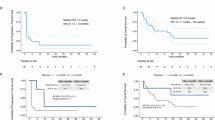 Among the 14 patients (78%) who underwent targeted panel sequencing, no somatic nucleotide variant or copy number alteration was associated with PFS (Supplementary Fig. 1; Supplementary Data 1). The most frequently mutated gene was TP53 in 86% of sequenced tumors. Six tumors had alterations in PTEN, defined as nonsynonymous mutations and/or copy number loss (Supplementary Fig. 1; Supplementary Data 1). PTEN alterations were not associated with PFS (Supplementary Fig. 2a; Supplementary Data 1). Three tumors had nonsynonymous mutations in PIK3CA (two H1047R missense alterations and one in-frame deletion G106_E109del) (Supplementary Fig. 1; Supplementary Data 1). PIK3CA mutations were also not associated with PFS (Supplementary Fig. 2b; Supplementary Data 1). Immunotherapy-related genes had few mutations overall and no copy number alterations associated with PFS (Supplementary Fig. 3; Supplementary Data 1). Median TMB was 4.7 mutations/Mb (range 2.3–10.6), and the single patient with TMB > 10 had progressive disease as the best response to treatment.