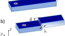 where γ0 is the gyromagnetic ratio and α the Gilbert damping coefficient. Eq. (8) was solved using the classical Runge–Kutta method with a dimensionless discretized time step \({\mathrm{\Delta }}t^ \ast = \frac{{\gamma _0M_{\mathrm{s}}}}{{1 + \alpha ^2}}{\mathrm{\Delta }}t = 0.01\). Our testing shows that the use of a smaller reduced time step of 0.005 yields almost the same result. The equilibrium state (e.g., t = teq, see Fig. 3) is considered to be reached when \(\left| {{\mathrm{\Delta }}\langle m_z\rangle /{\mathrm{\Delta }}t^ \ast } \right| < 10^{ - 4}\), where \({\mathrm{\Delta }}\langle m_z\rangle\) denotes the change in the volume average of normalized perpendicular magnetization mz per time step Δt*. The simulations were performed in three-dimensional discretized cells of \(n_x{\mathrm{\Delta }}x \times n_y{\mathrm{\Delta }}y \times n_z{\mathrm{\Delta }}z\), where ni and Δi (i = x, y, z) indicate the number of cells and corresponding cell size along a Cartesian axis. Specifically, we use a constant nz = 17 where the bottom 11 layers of grids describe the elastically stiff piezoelectric layer (meaning that the piezoelectric has a large Young’s modulus), the middle 2 layers describes the magnetic ultrathin nanostructure including its lateral surrounding vacuum space, and the top 4 layers describes the space on top of the magnet. Δz is set as 0.55 nm to describe a 1.1-nm-thick magnetic disk. Various disk diameters were described by varying nx and ny under a constant in-plane cell size \({\mathrm{\Delta }}x = {\mathrm{\Delta }}y = 1\,{\mathrm{nm}}\). In most cases, using a smaller in-plane cell of 0.5 nm yields almost the same results. However, when either the interfacial DMI strength D or the disk diameter is relatively small (e.g, see blue circles in Fig. 2b,c where the skyrmion has a notably higher energy than the other spin structures), only the use of smaller in-plane cells (e.g., 0.5 nm) allows us to access these highly metastable skyrmions. A similar case has been reported in previous micromagnetic simulations.6