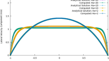 where \({F}_{x}\) and \({F}_{y}\) are the vertical and horizontal fluid forces, respectively. These measured dimensionless coefficients are shown in Table 2 along with reference data obtained by solving the Navier–Stokes equations.33 We found that for \(n\ge 60\) our computations are in a good agreement with the Navier–Stokes results.
