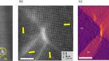 Here we will focus on the electronic properties of charged 39° (11\(\bar{1}\)) DWs. The angle between the polarization vectors in neighbouring domains in these DWs is close to 39°, and the DW plane lies in the (11\(\bar{1}\)) crystallographic plane (see Fig. 1). Depending of the polarization orientation with respect to the DW boundary, we have two types of 39° (11\(\bar{1}\)) DWs: tail-to-tail (T-T) and head-to-head (H-H). We construct GeTe supercells containing both 39° T-T and H-H DWs as explained in the ref. 39. We carry out electronic structure calculations on these supercells using density functional theory, as detailed in the “Methods” section.