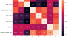For instance, permutation feature importance consists of randomly shuffling the values of an input variable while keeping other input variables unchanged; the decrease in the prediction accuracy of the model after permuting is then quantified and reported as a measure of importance110,111. This permutation feature importance measure works well if input variables are independent, but it can produce unrealistic data points if input variables are fully or partially dependent109. Figure 7 shows two examples in concrete strength prediction, where permutation generates unrealistic concrete mixtures. The use of superplasticizers (high-range water-reducing admixtures) is known to reduce the water content by 20 to 30% and increase the flowability2. In the concrete compressive strength dataset24,112 (Table 2) using the absolute volume method, the superplasticizer dosage varies from 0 to 32 kg/m3 and the water content from 122 to 247 kg/m3. The negative relationship between superplasticizer and water seems reasonable and the Pearson correlation coefficient (the most common, straightforward measure of correlation) was calculated as –0.66 (black circles in Fig. 7a). However, some concrete mixtures generated after permutation (red pluses in Fig. 7a) can be meaningless and misleading. Those mixtures located in the upper right corner (high water content and high superplasticizer dosage) may lead to segregation or excessive bleeding; those in the lower-left corner (low water content with no superplasticizer) tend to be sticky. In other words, both fail to meet the workability requirement.