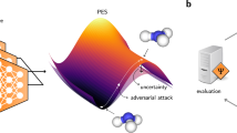 where kB is the Boltzmann constant, T the absolute temperature, and \(\hat{E}({x}_{\delta })\) in the numerator is the predicted energy of the perturbed structure, while E(x) in the denominator denotes ground truth energy of structures in the initial training data set. Refer to Supplementary Section III for parameters used in adversarial sampling.