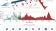 Conventional transient absorption experiments involve two pulses – a pump pulse drives the system into an excited state, while the following probe pulse is used to detect the pump-induced modifications in the sample. The tunable time delay between the pump and the probe pulse allows to track the dynamics of these changes (Fig. 1a). While these and other pump-probe experiments provide important insights into the nonequilibrium dynamics5, conventional pump-probe experiments have some limitations when it comes to detecting fine and transient structures during the ultrafast evolution of the system. The typically strong pump pulse required to generate a detectable difference in the probed signal will heat the system, or even degrade the lattice structure31. Also, strong interband charge transfers and incoherent backgrounds can hide short-lived transient high energy states or coherent dynamics in strongly correlated materials32,33.