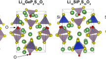 The mean square displacement (MSD) of lithium ions after time period t can be calculated as \({\rm{MSD}}(t)=\frac{1}{N}\mathop{\sum }\nolimits_{i}^{N}| {r}_{i}(t)-{r}_{i}(0){| }^{2}\), where N is the number of lithium ions. Assuming Brownian motion, the diffusion coefficient D of lithium ions in 3-dimensional space can be deduced as \(D=\mathop{\lim }\nolimits_{t\to \infty }\frac{{\rm{MSD}}(t)}{6t}\). The Nernst–Einstein relation relates ionic conductivity σ at temperature T to the lithium diffusion coefficient if the correlation between ions is negligible, \(\sigma (T)=\frac{{(ze)}^{2}}{V{k}_{B}T}D\), where V the volume of simulation cell, ze the electronic charge for each lithium ion, and kB is the Boltzmann coefficient50. Ion conduction is a thermally activated process, and the activation energy Ea can be extrapolated by fitting the modified Arrhenius relation to the calculated ion conductivity at various temperatures, \(\sigma (T)={\sigma }_{0}{T}^{m}\exp (\frac{-{E}_{a}}{{k}_{B}T})\), with m typically equal to −1. The pre-factor σ0 is related to ion hopping entropy, distance, as well as attempt frequency in the simple case of uncorrelated ion hopping4. In practice, σ0Tm can be approximated as constant over temperatures.