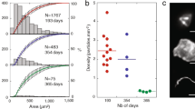 About half of the population has an average area value and a shape consistent with those of a single cocci (Fig. 3b) while the others, being either round or elongated (Fig. 3c, Supplementary Fig. 4), often display constriction figures, consistent with division features of filamentous microbial cells or cocci.