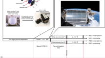 Pre-flight mononuclear cells were isolated from a healthy bone marrow donor using Histopaque-1077 (Sigma-Aldrich) following density gradient protocols and used to culture expand the MSCs. The MSCs were cultured in α-minimum essential medium (Fisher Scientific) supplemented with 16.5% fetal bovine serum (FBS; R&D Systems) (designated as Complete Culture Medium, CCM) according to a previously reported method20,21. MSCs were expanded to passage 2 and MSC cultures were over 89% pure based on the CD73, CD90, and CD105 co-expression and absence of hematopoietic lineage-specific markers. Expanded MSCs in 25 ml of CCM were seeded into BioCells at passage 4. BioCells were divided into 1- or 2-week groups. The 1-week group was seeded with 5 × 104 MSCs, while the 2-week group was seeded with 2 × 104 MSCs. Identical BioCells were prepared for ground controls. After launch, no media exchange was performed. At the specified time points, MSCs were treated and harvested according to the following procedures. A 4.5 ml media sample was pulled into a monovette through a BioCell sample port and frozen at −95 °C directly for cytokine and growth factor analysis. Cells in the BioCell were trypsinized and 1.5 ml of cell sample was mixed with 5 ml of RNAprotect (Qiagen), and then moved to −95 °C for RNA expression analysis. The remaining cells were frozen in cell preserving medium containing 5% dimethyl sulfoxide (Sigma-Aldrich) directly inside the BioCells and stored at −95 °C.