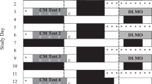 After maintaining a 6-h sleep schedule for the prior week, 16 healthy participants were admitted into a time-cue-free sleep laboratory for a 13-day inpatient study. They maintained 6 h of sleep per day but were slam shifted with a 9-h sleep delay four times as shown in Fig. 2. A test session was scheduled before each shifted sleep opportunity, and participants were therefore awake for 16 h by the end of each test session. The first test session on Day 4 was performed while exposed to standard ~90 lux (4700 K) white light and placebo, while the last three sessions were performed under one of three randomized countermeasure conditions: standard white light and hourly caffeine (0.3 mg kg−1 h−1), ~90 lux blue-enriched white light (6300 K) and placebo, or 90 lux blue-enriched white light and hourly. The order of countermeasure conditions was balanced across participants. Within each session, participants completed a 1-h robotics test battery followed by a 30-min cognitive test battery and repeated both four times for a total session duration of 6 h. Technical problems during Subject 14’s participation led to the loss of data for the first three blocks of the session using the blue-enriched white light and placebo condition.