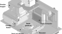 The building process happens in an insert: an easily removable cartridge (shown in Fig. 2) accessible through a hatch which includes the powder container, the Z- and E axis drives, and the build-platform. This way the build-platform or powder – even the whole cartridge – can easily be exchanged when the device is in flight configuration before lift-off. The powder must be stabilised against weightlessness when it is part of the powder bed and yet be flowable enough to apply new layers to this bed. To this end, within the cartridge, a closed-loop gas flow is used to force powder particles towards the build-platform, as done in the gas flow-assisted powder deposition previously described24. A rubber hose is attached to the mounting adapter for the build-platform, allowing vacuum generation below it. Because of the platform’s porosity, a gas stream perpendicular to the surface is generated, pushing powder particles towards it. Outside of the cartridge, the gas stream is directed through a set of 10 µm particle filters, and a mass flow sensor (Red-Y series, Vögtlin Instruments GmbH), into two parallel acting controllable diaphragm pumps, type 3111.610 (Boxer GmbH). While filters and flow sensors are placed outside the chamber, the pumps are inside the chamber, to avoid external pressure differences on the pumps. The pump outlet is left open, back into the chamber.