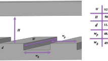 At the inlet of the capillary channel, bubbles are injected horizontally through a nozzle to form a bubbly flow. The distance between the outlet of the bubble tube and the inlet of the open capillary channel is l1 = 35 mm, which is taken as the length of the inlet closed channel. The gas used in the experiment was nitrogen, and the liquid was FC-72 produced by 3 M Company with the parameters of \(\sigma =0.01\)N/m and kinematic viscosity \(\mu =6.38\times {10}^{-4}\)Pa·s. The ambient temperature was 21 °C. Specific parameters are shown in Table 1. And the inlet pressure of the straight rectangular pipe \({P}_{0}=2/{R}_{CT}\), where RCT is the compensation tube radius which equals 3 cm.