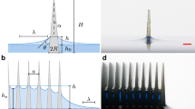 Figure 5a shows the measured tip location Ltip changes with t. Figure 5b shows the measured tip location Ltip changes with \(\sqrt{t}\). At the start, the liquid’s response to the sudden decrease in gravity is complex, and inertia plays a significant role at this stage16. The liquid climbs rapidly, and what can be observed is the tip location Ltip grows linearly with t in this stage. About one second later, the effect of inertia disappears and that of viscous force becomes stronger. The liquid climbing speed decreases gradually.