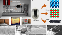 From materials point of view, compared to their bulk counterparts, nanomaterials like nanofibers possess unique size- and surface-dependent properties, including high specific surface area and distinctive physical and chemical characteristics20,21. For instance, nanofiber forms (such as membranes) offer superior performance compared to conventional thin films by means of enhancement of the piezoelectric effect22. Various kinds of electro-spun nanofibers23, that have been used in TENGs24, already demonstrated superior performance in wearable technologies. Therefore, at the intersection of wearable electronics and TENG, electro-spun nanofibers hold great promises, as depicted in Fig. 1a. These kinds of nanostructures are better endowed as materials for wearable devices with exceptional breathability, which is a crucial factor for user comfort24,25,26, as showcased in Fig. 1b. In this sense, electrospinning stands as a preferred growth technique of nanofibers (a stereotype of an electrospinning system is illustrated at the bottom left of Fig. 1a). Currently, by leveraging electro-spun membranes, TENGs can functionalize piezoelectric and dielectric properties of electroactive polymer and composite materials via structural optimization, intelligent design and integration with cooperating devices. For instance, composite electro-spun nanofibers made out of poly(vinylpyrrolidone) and amorphous TiO2 have been realized (Fig. 1c), which can provide enhanced TENG output. Especially, electro-spun nanofibers pertaining to energy harvesting (such as TENG), self-powered, and sensing devices have been fueling significant advancements in the realm of smart textiles.