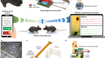 To circumvent this limitation, convection-enhanced delivery (CED) has emerged as a promising approach, involving the direct infusion of drugs into brain tissue through implanted probes8,9,10,11. By enabling localized drug delivery, CED minimizes systemic exposure and reduces off-target effects12,13,14. Microfluidic neural probes are increasingly used for this purpose, yet conventional designs typically depend on external pumps and tubing, limiting their utility in freely moving animals and hindering long-term in vivo studies. Tethered systems also compromise the fidelity of neuropharmacological assessments, highlighting the need for wireless, untethered platforms with integrated drug delivery capabilities10,15,16,17.