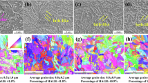 In order to investigate the corrosion resistance of the surface films formed on the samples further, EIS measurement was performed using the as-received and MAC samples before and after oxidation for 20 h and 300 h. Figure 9a–d illustrates the Nyquist and Bode diagrams of the as-received and MAC samples before and after HTO. From Bode diagrams (Fig. 9b, d), the impedance moduli of the samples before HTO vary linearly with the frequency with a slope of about -1 in the middle and low-frequency range, and the corresponding phase angles evolve between 60° and 85°, implying that the surface films formed before HTO are mainly capacitive. After HTO, the as-received and MAC samples present two-time constants, including two capacitive peaks appeared in Bode diagrams. The impedance moduli and the radii of the capacitive loops decrease with increasing oxidation time, which suggests that the surface films after HTO are too loose to protect the substrate from corrosion in the 3.5 wt.% NaCl solution.