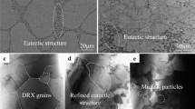 Rolling blanks of 40 × 35 × 20 mm were cut from the ingots, and hot rolled at 350 °C to a final thickness of 5 mm through three passes. The deductions of the three passes were 15%, 17.6% and 21.4% in sequence. Subsequently, the blanks were tempered at 350 °C for 15 min, followed by two passes of rolling with reductions of 27.3% and 37.5%, resulting in a total reduction of 75%. The hot-rolled plates were quenched in cool water, heated at 200 °C for 30 min, and then warm rolled at 200 °C to 2 mm in thickness through a single pass, with a large reduction of 60%. After the warm rolling, the plates were again quenched in cool water.