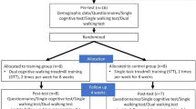 In addition, significant improvements after the ABC-C training, but not after education, were found on the dual-task cost on gait speed. This finding is consistent with the results of previous studies and showing that people with PD can improve gait performance during motor-cognitive interference situations18,19,20. Mobility in daily life frequently requires walking while performing simultaneous motor or cognitive tasks so daily life walking is more similar to dual-task, than single task walking when assessed in a laboratory environment21. Although control of walking should be automatic with minimal use of attentional control resources, people with PD tend to use attentional control strategies to compensate for impaired automatic motor control, resulting in reduced dual-task gait performance22. The improvement of dual-task cost was observed primarily for gait speed, not for stride length. Such discrepancy could be due to dual-task cost on cadence improving.