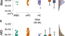 Cortical mean diffusivity (cMD) is a useful surface-based diffusion approach previously used to study the cortical microstructure of the brain in different neurodegenerative diseases33,34,35,36,37,38,39,40,41,42,43,44. Neurodegenerative diseases involve microstructural disorganization, cellular death, demyelination, and neuronal damage, inevitably leading to the collapse of water diffusion brain barriers33,34,35,36,43,45. We have previously shown that cMD is capable of detecting cortical abnormalities better than CTh approaches in several neurodegenerative diseases, focusing on specific regions41 or the entire brain33,35,44. Recently, this technique has been used in PD45,46,47,48 with and without RBD49. Furthermore, several studies on Alzheimer’s disease (AD) have pioneered the investigation of its prodromal stages using cMD34,37,41,50.