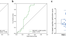 Brain imaging with a 3T SIEMENS PRISMA scanner equipped with a 64-channel head coil was conducted at the Research Center Juelich for all willing participants. To assess structural brain changes associated with SCD in iRBD, T1-weighted brain images of n = 35 individuals with iRBD without MCI were collected and acquired using a magnetization-prepared rapid acquisition gradient echo (MPRAGE) sequence (2500 ms repetition time, 2.22 ms echo time, 7° flip angle, 195.5 × 241 × 241 mm field of view, 208 × 256 × 256 matrix size, voxel size: 0.94 × 0.94 × 0.94 mm) within 4.58 ± 5.95 days of the clinical assessments. Images were preprocessed using the Computational Anatomy Toolbox (CAT12, CAT12.9 version 2560)50. Images were reoriented and aligned to the anterior commissure, followed by segmentation into GM, white matter (WM), and cerebrospinal fluid (CSF). The resulting GM images were normalized to the MNI space, modulated using the Jacobian determinant, and smoothed using a Gaussian kernel with a value of 6 mm full width at half maximum (FWHM). Additionally, projection-based cortical thickness was estimated, reconstructed, and smoothed with 15 mm FWHM.