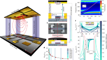 Spectroscopy data as a function of drive frequency and flux through the split-junction’s loop are shown in Fig. 2. We observe a dense set of regularly spaced resonances, with a mode spacing of about 1/ρ ≈ 50–60 MHz, which is disturbed periodically in flux (only a fraction of the period is shown). This flux-dependent disturbance is associated with the tuning of the transmon’s resonance across the spectrum of the transmission line. The unique feature of these data compared to previous multimode circuit experiments27,31 is that there are no individual vacuum Rabi splittings. In fact, at a fixed flux, the raw reflection trace vs. frequency contains no obvious sign of the atomic transition (Fig. 2b). However, upon tuning the flux, we observe that multiple resonances shift by nearly the same amount, indicating that many modes are equally sensitive to the tuning of the transmon (see three insets in Fig. 2a).