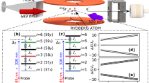 a The experimental setup. Our BEC is created in an octagonal chamber. Two dipole trap beams (DT1 and DT2) form the crossed dipole trap. The Raman incoming beam is about 7° off-axis from the beam DT2. The incoming Raman beam and the reflected Raman beam are combined with a polarization beam splitter, they are σ+ and σ− at the chamber center. The probe direction is about 45° with respect to the Raman direction