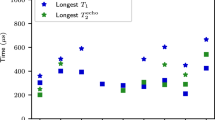 In Fig. 5b, c, \(T_2^ \ast\) is almost always longer than T1, implying that Tϕ > 2T1. In Fig. 5h this is quantified, as the histogram of the ratio of \(T_2^ \ast {\mathrm{/}}T_1\) reveals that the qubit dephasing is almost always near 2T1. Therefore, the qubit’s \(T_2^ \ast\) is mainly limited by T1. To the authors’ knowledge all other demonstrations of T1-limited T2 required dynamical decoupling by either a Hahn-echo (spin-echo)9,25 or CPMG11 sequence. However, neither of those works provide any statistics on whether the qubits were always T1-limited. The histogram in Fig. 5h also reveals counts where the ratio is above 2: these correspond to the instances where the T1 has fluctuated within an iteration, similar to that shown in Fig. 2b.