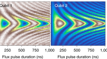 Our experiment uses two qubits from a 12-qubit superconducting quantum processor (Fig. 2a). The qubits32,33 are arranged in a linear array and are capacitively coupled to their neighbours, and the coupling strength is measured to be 11.0 MHz, corresponding Ts = 32.1 ns. Each qubit is also capacitively coupled to a readout resonator. Parameters for qubits used in the experiment are listed in Table 1 and illustrated in Fig. 2b.