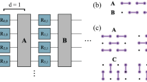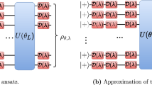 The variational parameters \({{{\boldsymbol{\gamma }}}}=\left({\gamma }_{1},{\gamma }_{2}\right)\), \({{{\boldsymbol{\alpha }}}}=\left({\alpha }_{1},{\alpha }_{2}\right)\) are optimized by the hybrid classical-quantum algorithm to generate states closest to the ideal TFD states. A single step of intra- and inter-system interaction ideally produces the state \(\left|\psi ({{{\boldsymbol{\alpha }}}},{{{\boldsymbol{\gamma }}}})\right\rangle =U\left({{{\boldsymbol{\alpha }}}},{{{\boldsymbol{\gamma }}}}\right)\left(\left|{{{\Phi }}}_{2}^{+}\right\rangle \otimes \left|{{{\Phi }}}_{1}^{+}\right\rangle \right)\)19.